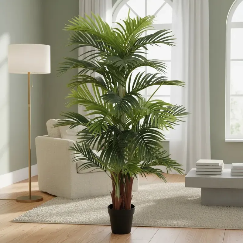 A Palmeira artificial possui folhas com material em plástico de excelente qualidade deixando-as com aparência muito natural, as hastes possuem arame as tornando flexíveis para ajustar as folhas da forma que preferir.